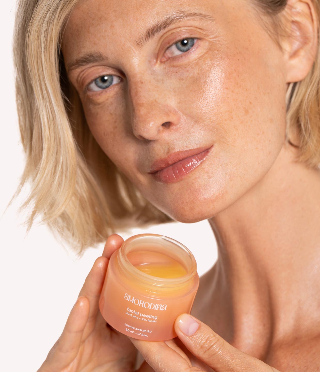 Формула с 20% AHA-кислот и 2% ферулловой кислотой активирует клеточное обновление, выравнивает тон и придаёт коже живое сияние.